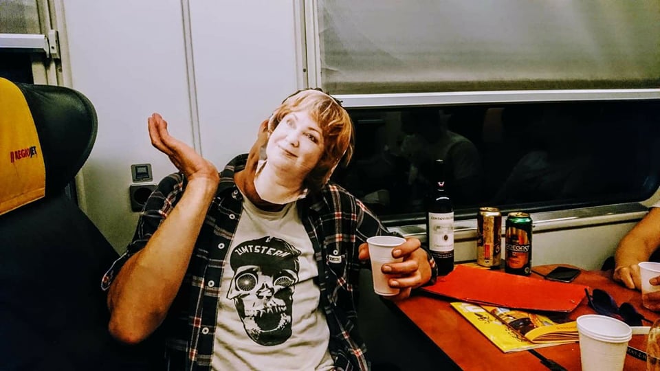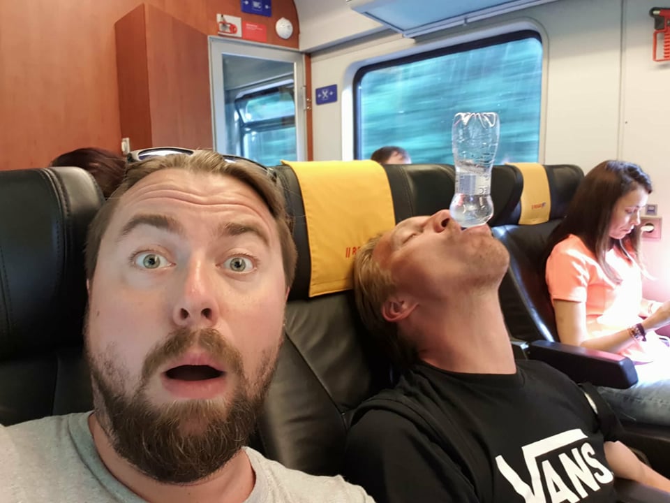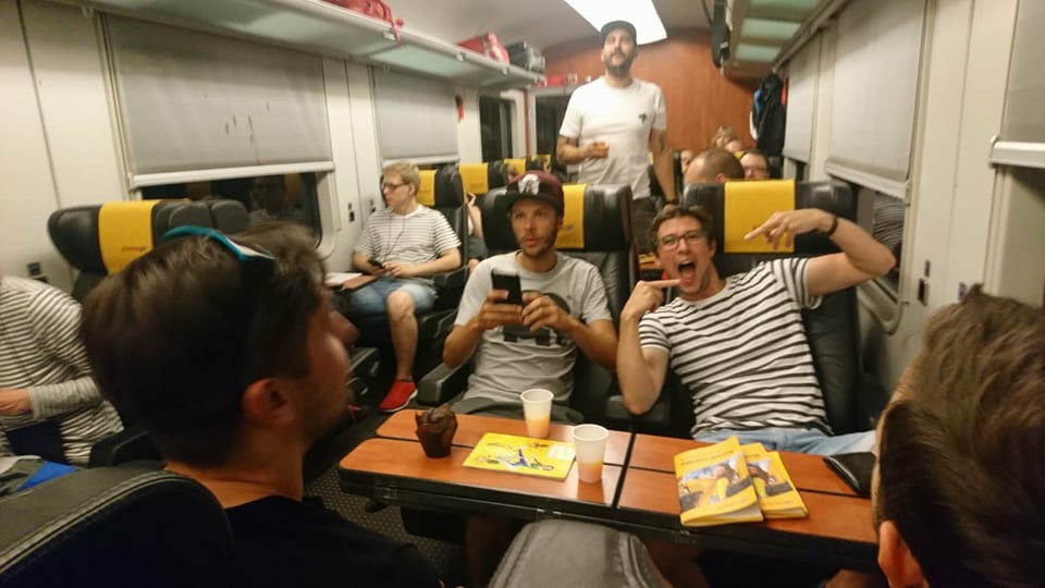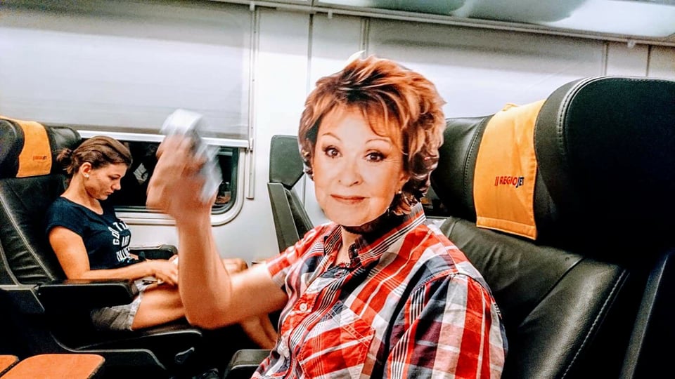 kupéčko ve vlaku s Naďou, Krytinářem, Soukupem a Bohdalkou, co se pozvala sama