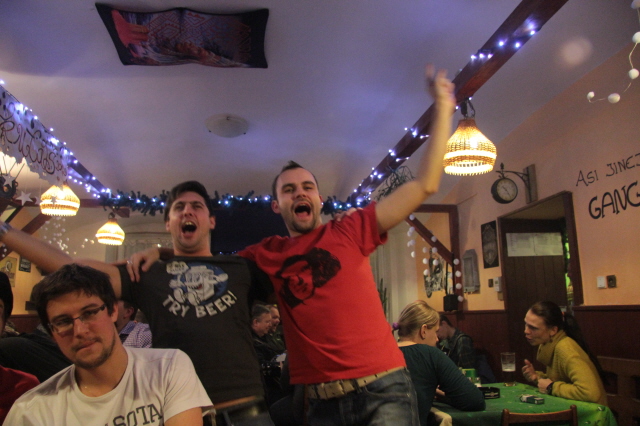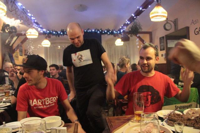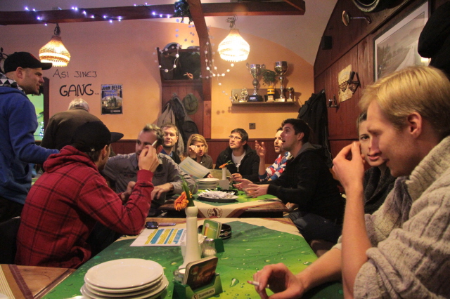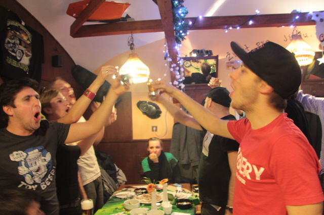 Poté hromadný odjzezd taxíky do centra, kde jsme si na Andělu dali ještě jedno točený. A za rok zase v Chejnicích....!