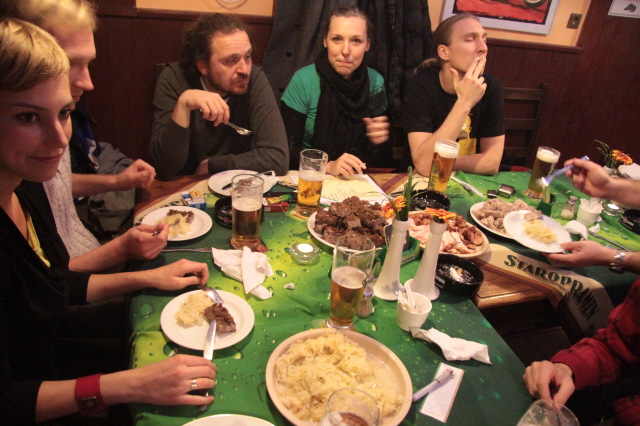 Páteční večer 7.12. 2012 se nesl ve znamení vepřového obžerství. Vyjeli jsme totiž k Lumovi do Chýnic za Prahou, abychom v motorkářské restauraci Na Radnici drobátko pojedli, popili a poveselili se.