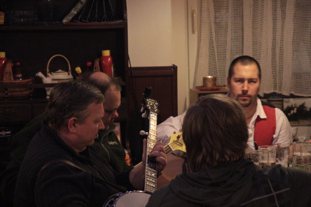 Na stolech jelítka, jitrnice, prejt, zelíčko, ovar, šunka, klobásky, horčice, okurčičky, křen a vejmrda... k tomu prdelačka, dršťkovka, gulášek. To vše prokládáno pivem, jägrem, slivkou a hrou "kdo vypije ocet". K tomu hrála zábavová country kapela a my si během večera asi dvacetkrát zazpívali Sestřenici od VDP. Country je zkrátka jen jedno. Na závěr došlo i na sázky, kdo sežere dva plátky chleba během minuty za dvě stovky, což nikdo nedal.
